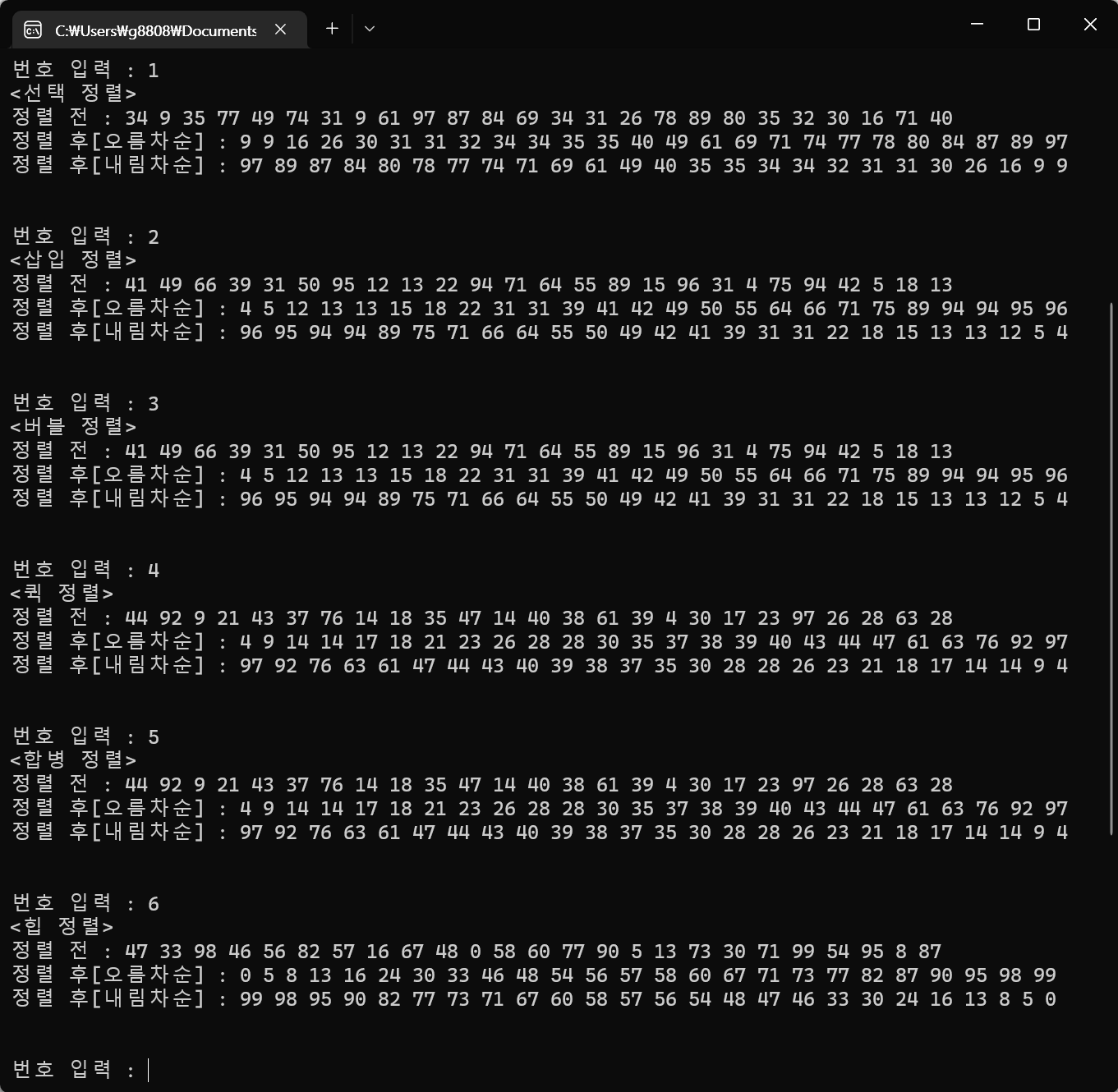 printf("*** 5. 합병(merge) 정렬 ***\n");
