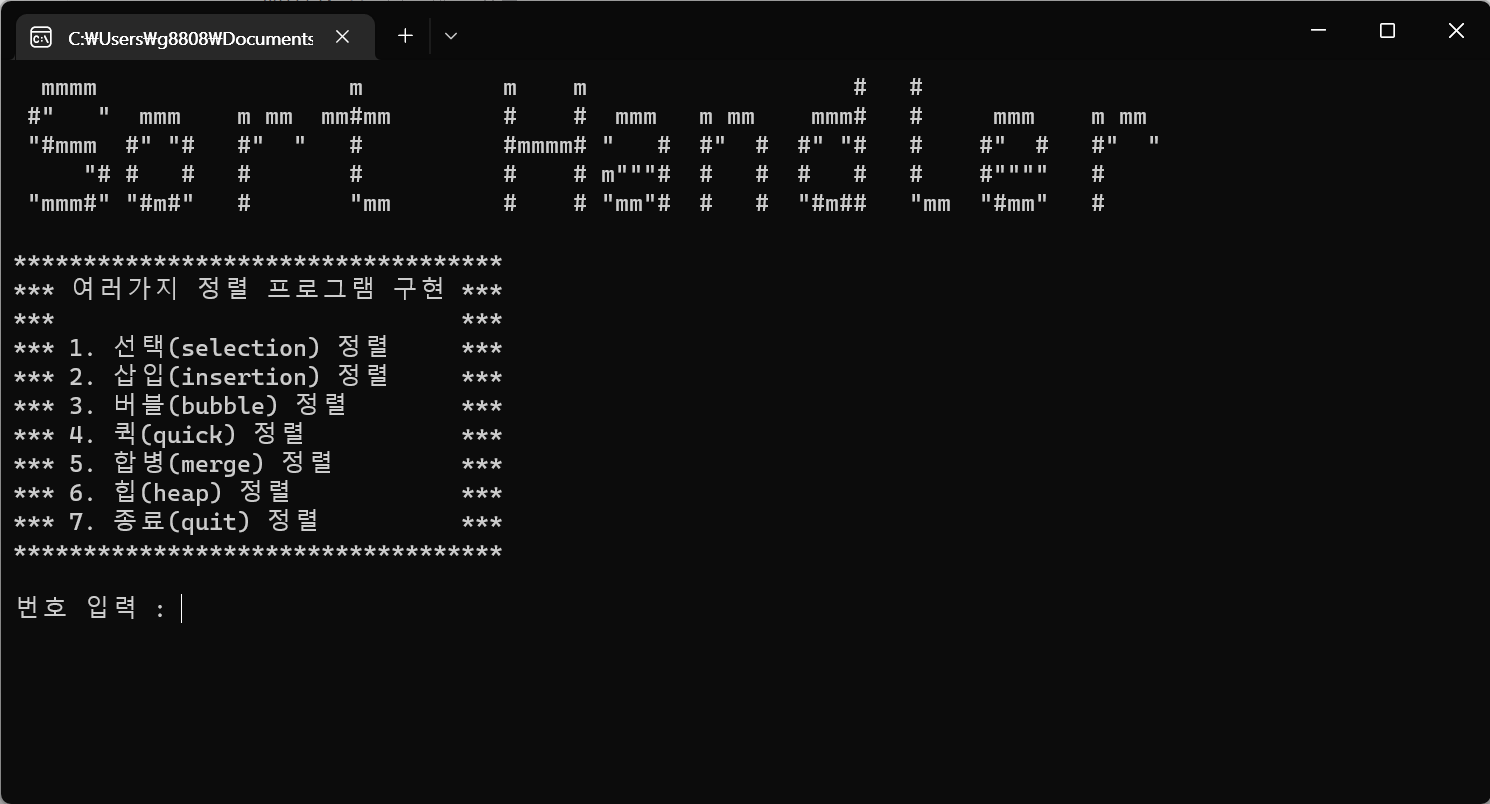 printf("*** 7. 종료(quit) 정렬 ***\n");